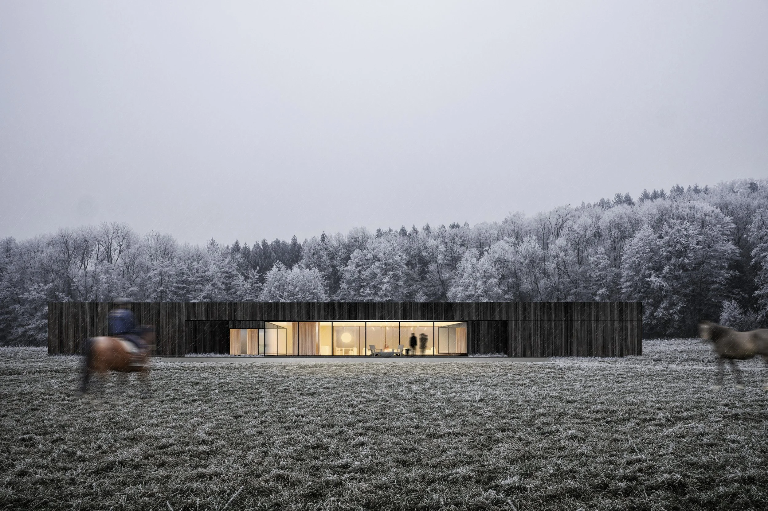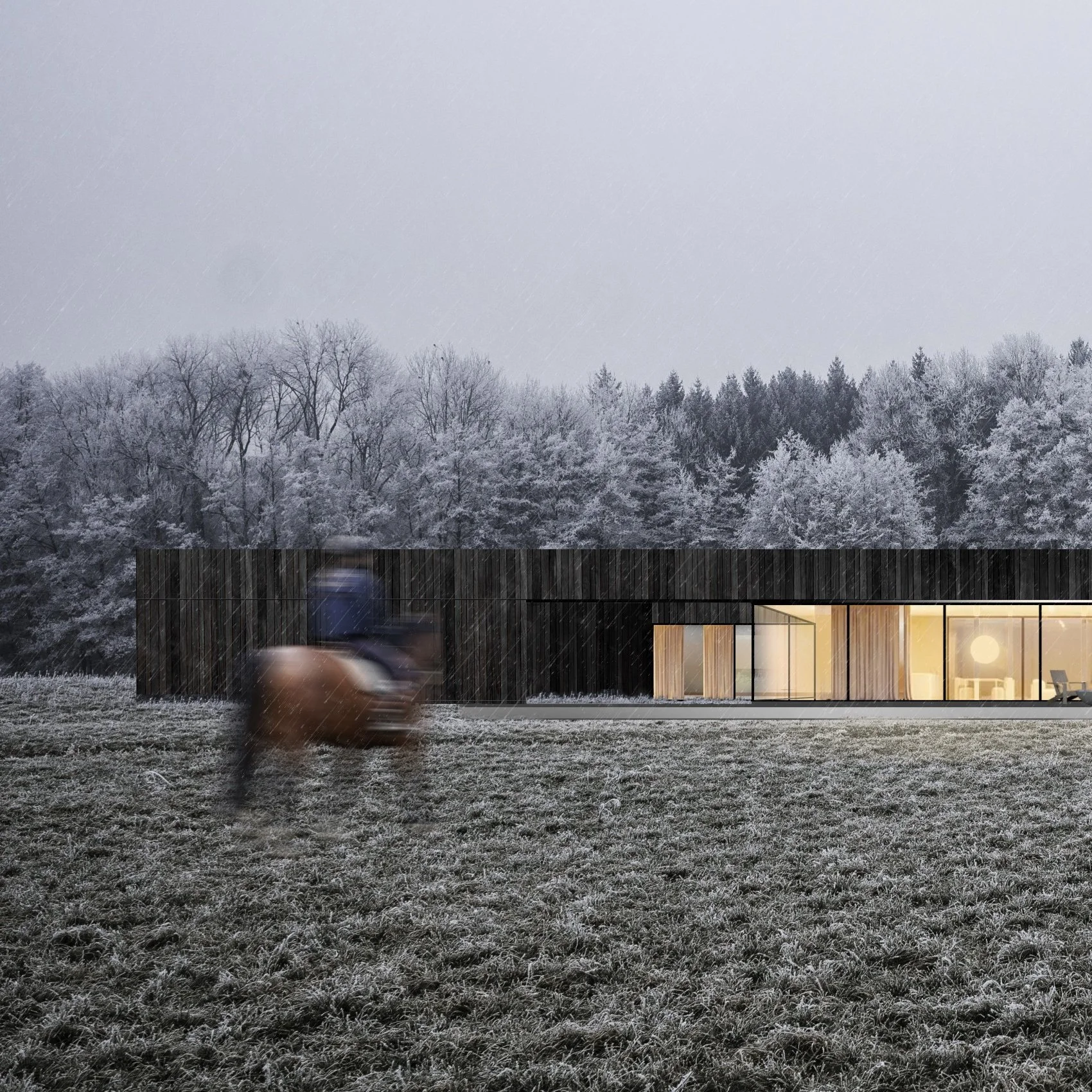 Designed for a family of horse enthusiasts on a working horse farm, the task was to capture and reimagine the poetic essence of the industry's ubiquitous horse stable, while also meeting the practical needs of a functional home.
